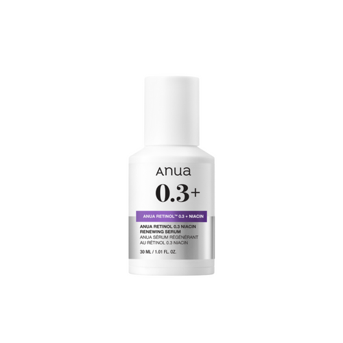 Anua Nano Retinol 0.3% + Niacin Renewing Serum: Brightens, firms, hydrates, and rejuvenates skin. Suitable for all skin types. Made in Korea.